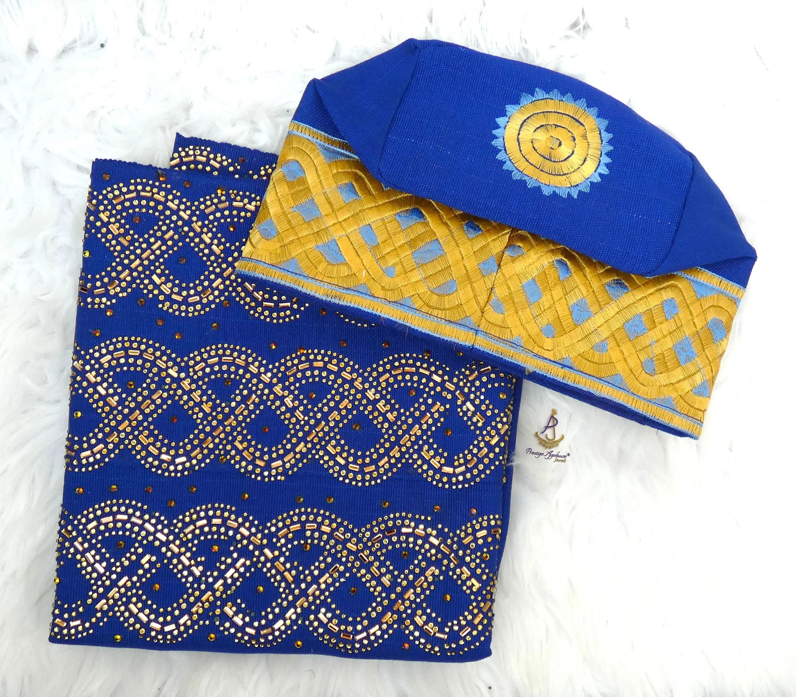 Embrace your heritage in style with this Gold and Royal Blue Aso Oke Yoruba Fila Cap Women Gele, a timeless symbol of African pride, elegance, and tradition. Handcrafted with care, this cap is designed for Yoruba grooms, wedding celebrants, and stylish men who appreciate cultural excellence and regal fashion.