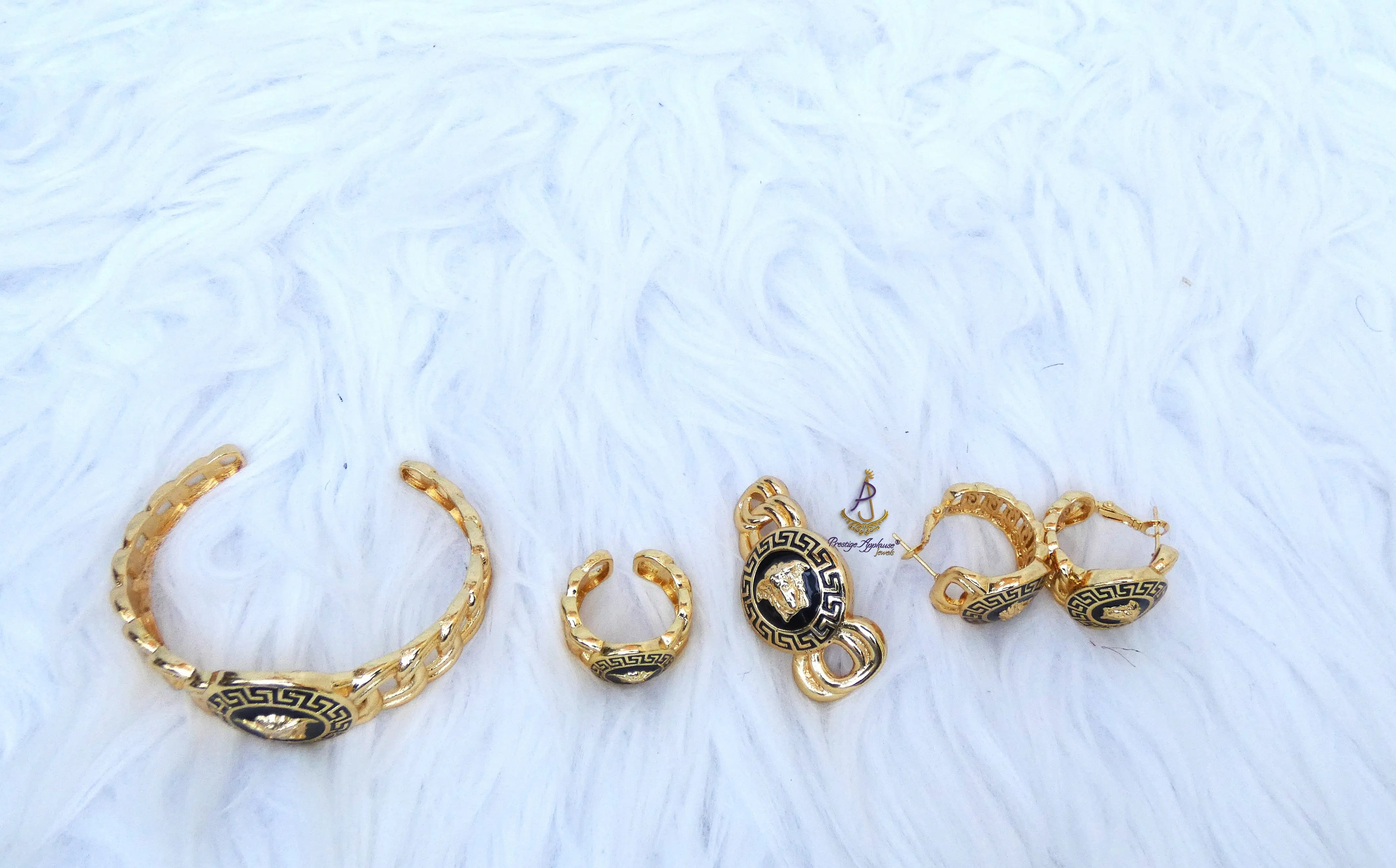 18K Design Replica Black Design Gold Plated Necklace Earring Party Dinner Cocktail Bride Jewellery Set