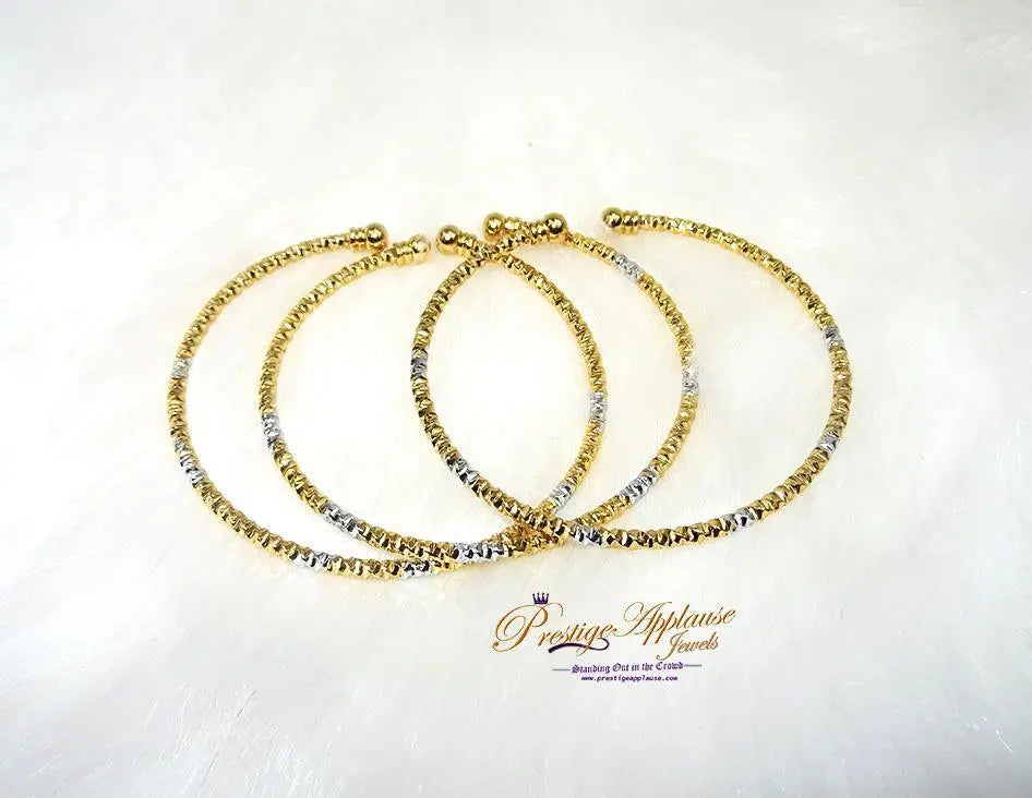Prestige Applause 3 pcs Gold Plated Cuff Bangles Bracelet, Cuff Bracelet, Open Bangle, Two Tone Colour Bangle, Wedding Bride Jewellery