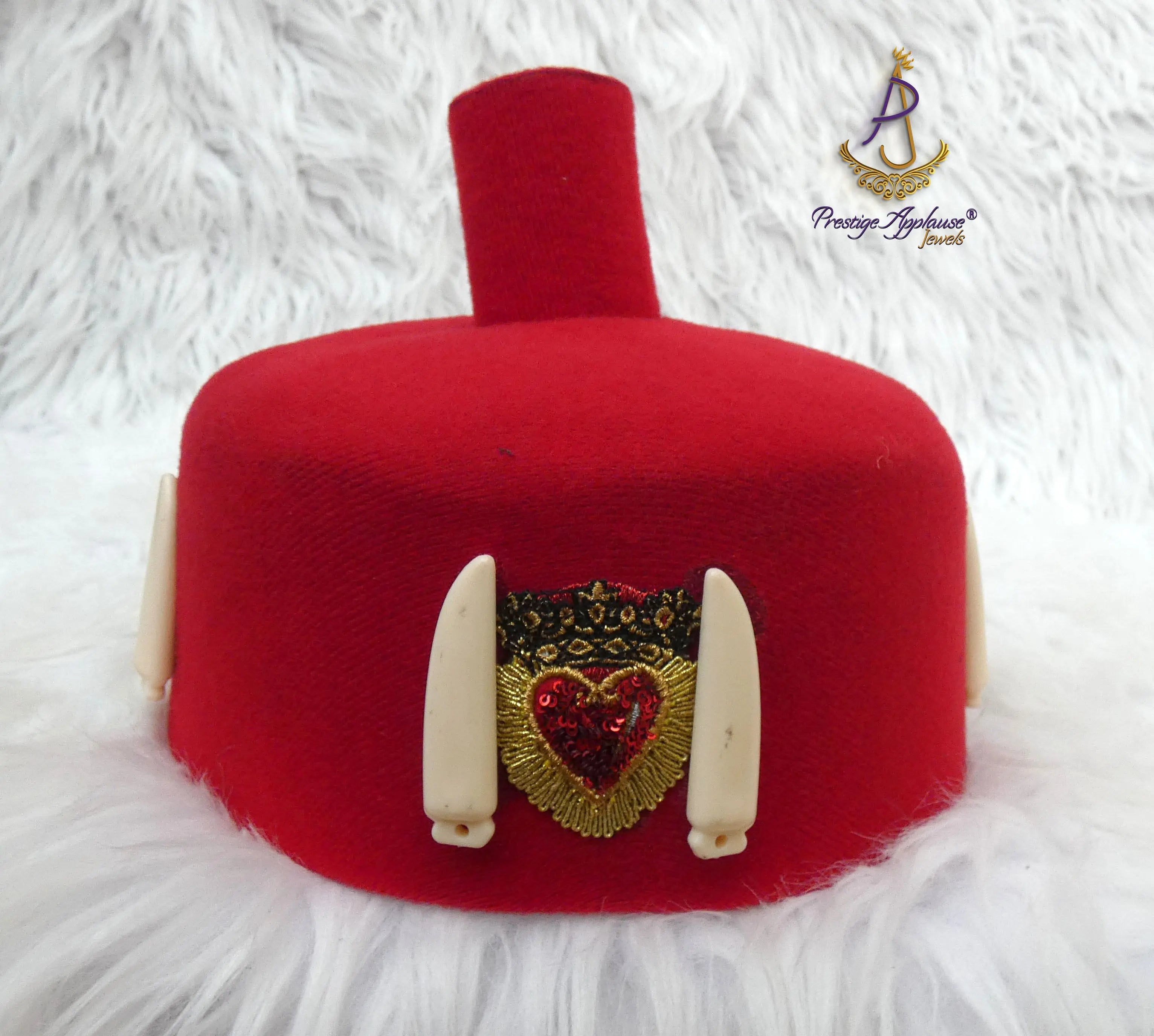 Igbo Edo Chieftaincy Ozo Red Hat | Nigerian Men’s Cap | African Traditional Chief Hat with Hand Held Accessories
